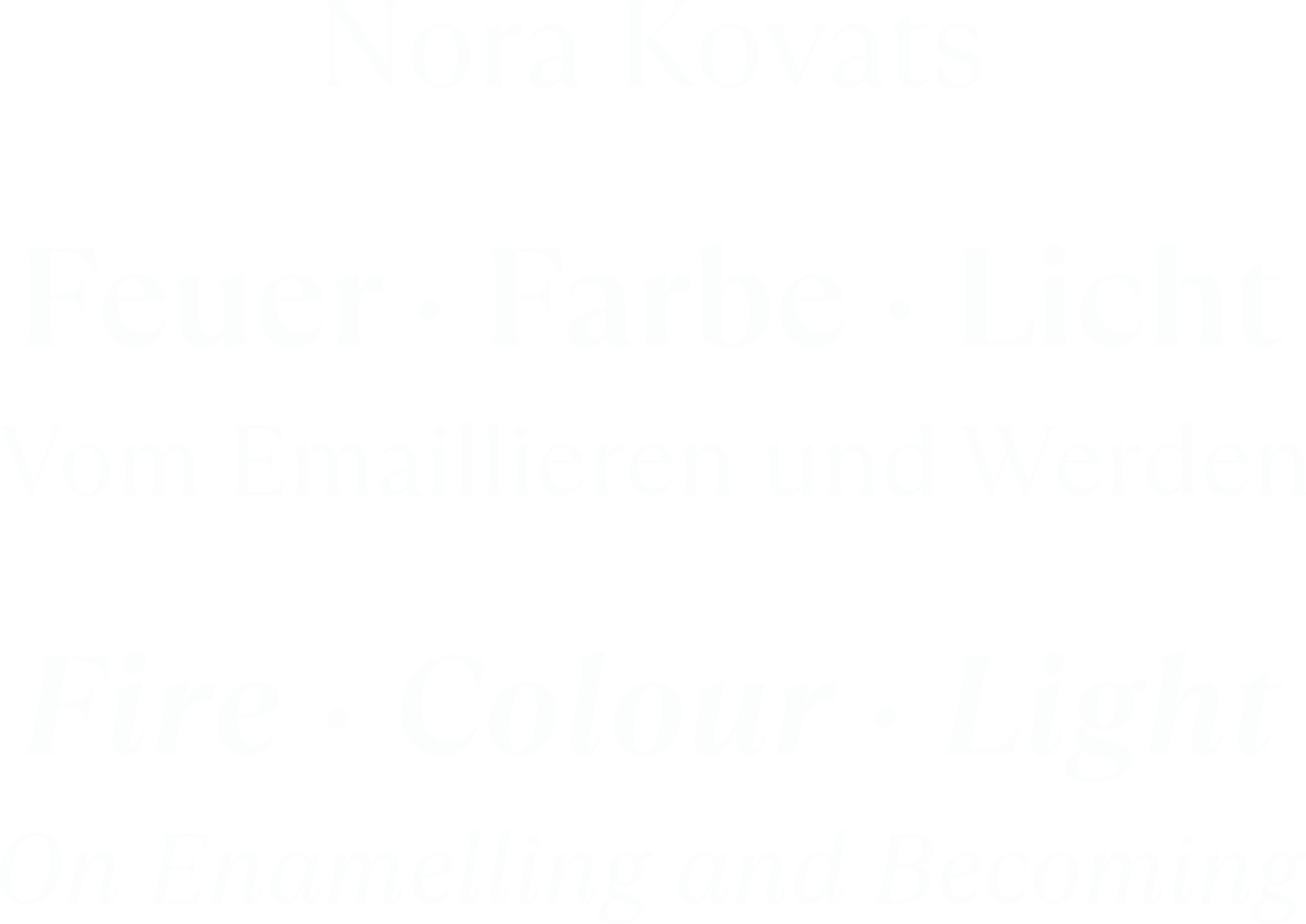 Feuer · Farbe · Licht – Vom Emaillieren und Werden ist die erste Publikation des Eigenverlags NONNE 11 dreiviertel. Konzeption, Editorial Design, Satz und Layout liegen in der Hand von Alvaro-Luca Ellwart. Produziert wird das Buch in Deutschland.